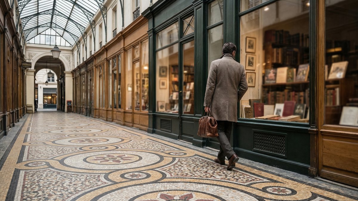 - Passage vivant : vous observez les boutiques, les libraires, les conversations au café.